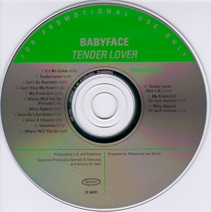 "Tender Lover"Written (with L.A. Reid and Pebbles), produced (with L.A. Reid), background vocals and keyboards; additional background vocals by Troop; peak chart positions (remix version): Pop #14, R&B #1 (1 week); this song was the first #1 R&B hit of the 1990's; also did remix production (contains a rap by Bobby Brown)